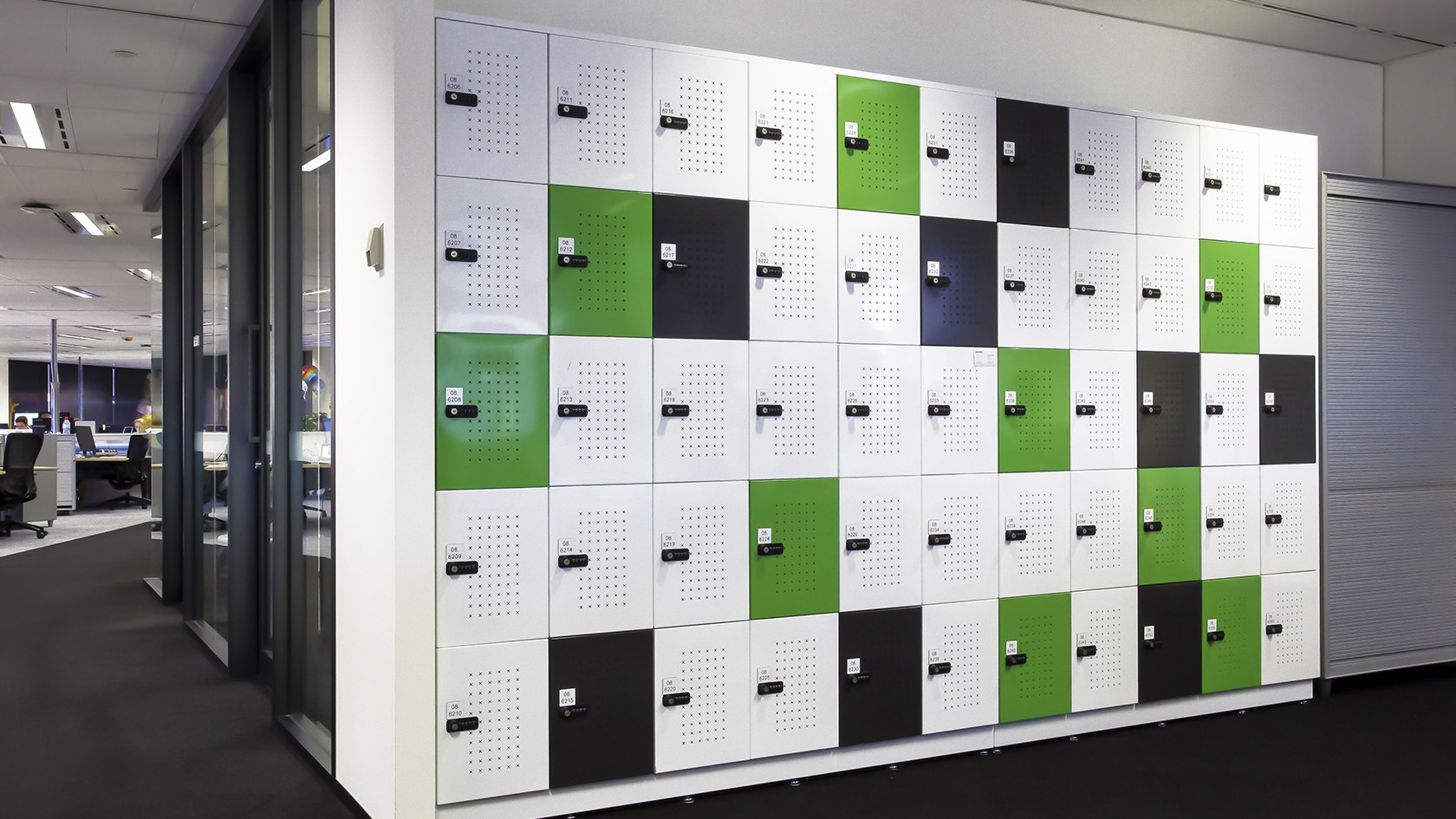 A Sydney-based private advisory consulting firm located in the CBD required a locker storage solution for staff to store belongings. Planex was chosen to supply the xLocker2 System in a mix of green, white and black powder coat finishes with doors featuring an X perforated punch pattern.